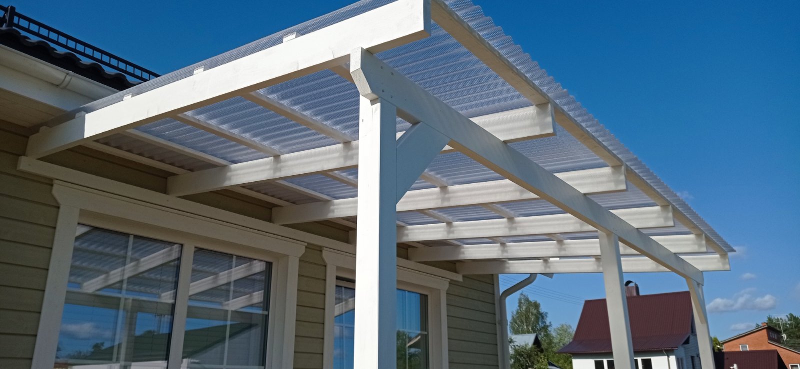 Kokia bebūtų patvari terasos danga vis vien ją veikia permainingos oro sąlygos. Sniegas, lietus, saulė neigiamai veikia jūsų terasą. Stoginė ne tik gali apsaugoti jūsų terasos grindis, bet ir tapti puikia vieta priimti svečiams ir leisti laiką su šeima ar draugais. Montuojame medinės ir aliuminio konstrukcijos stogines, aliuminines pergolas. Aliuminio profilių konstrukcijos stoginė yra ilgaamžė, nereikalaujanti priežiūros. Galite išsirinkti standartinių matmenų aliuminio stoginę arba užsakyti pagal individualų projektą. Stogines su grūdinto stiklo ar kanalinio polikarbonato stogo dangą gaminame patys, todėl atkreipsime dėmesį i visus jūsų pageidavimus.
